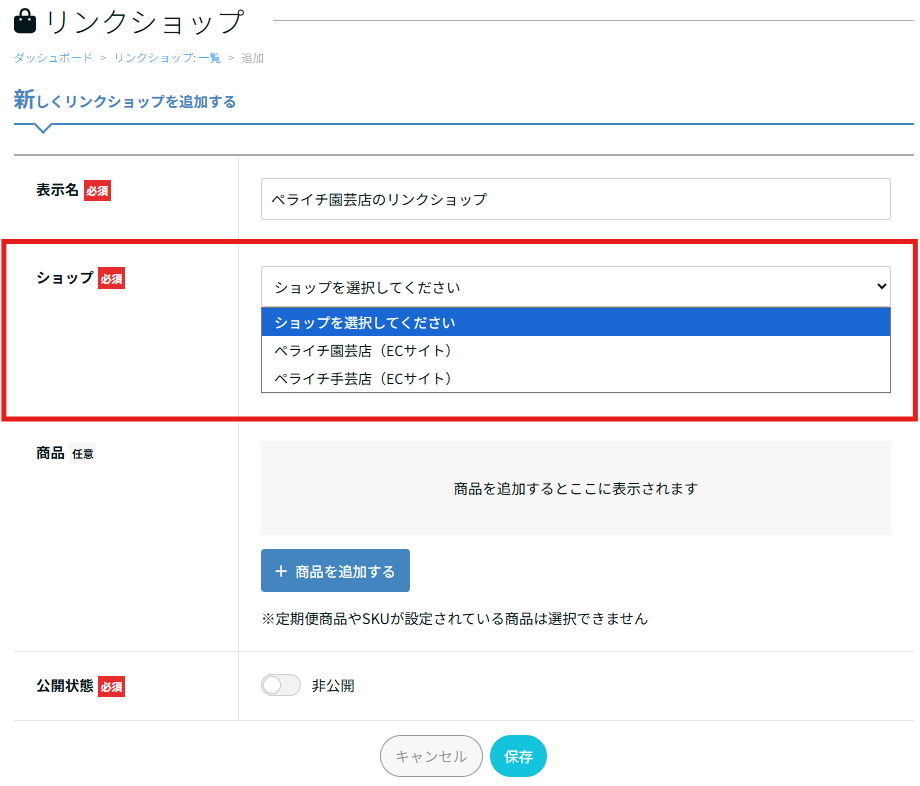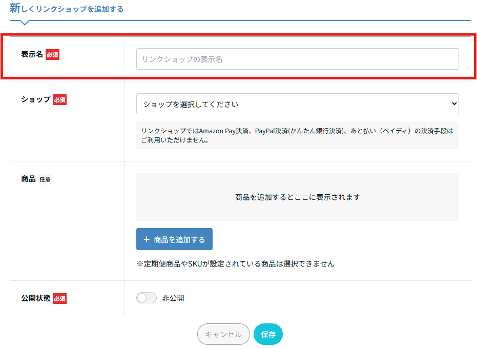 - 購入者向けのリンクショップでの「表示名」を設定します。