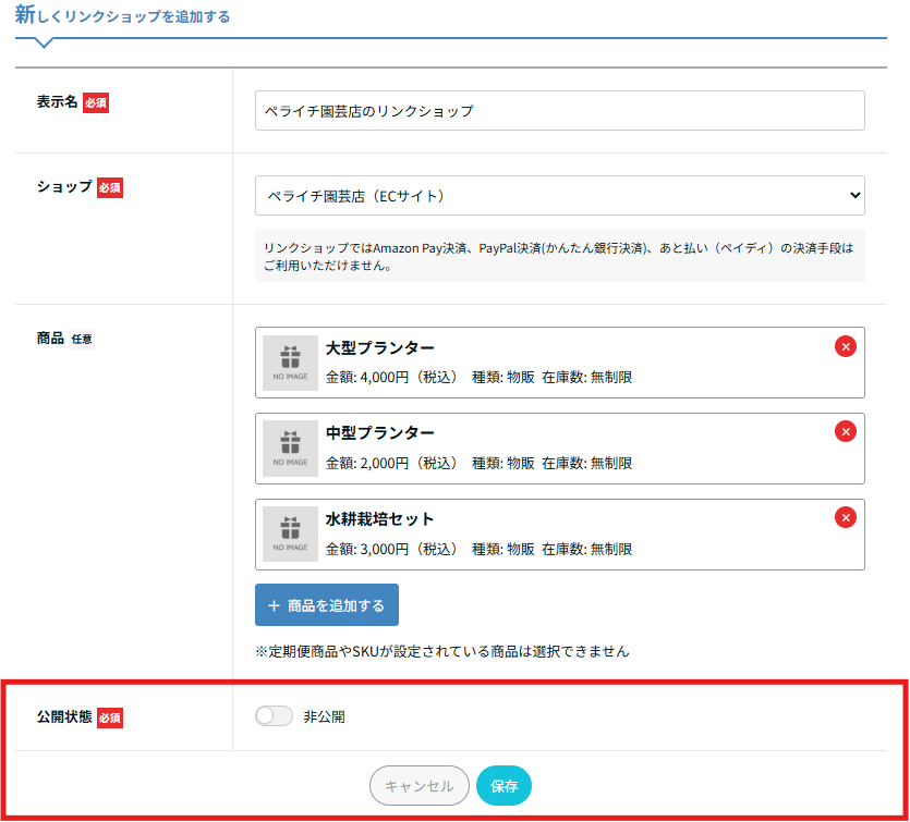 リンクショップは、商品の決済URLや二次元コードを作成し共有することで、ページ上に決済ブロックを設定せずに簡単に決済が可能な機能です。